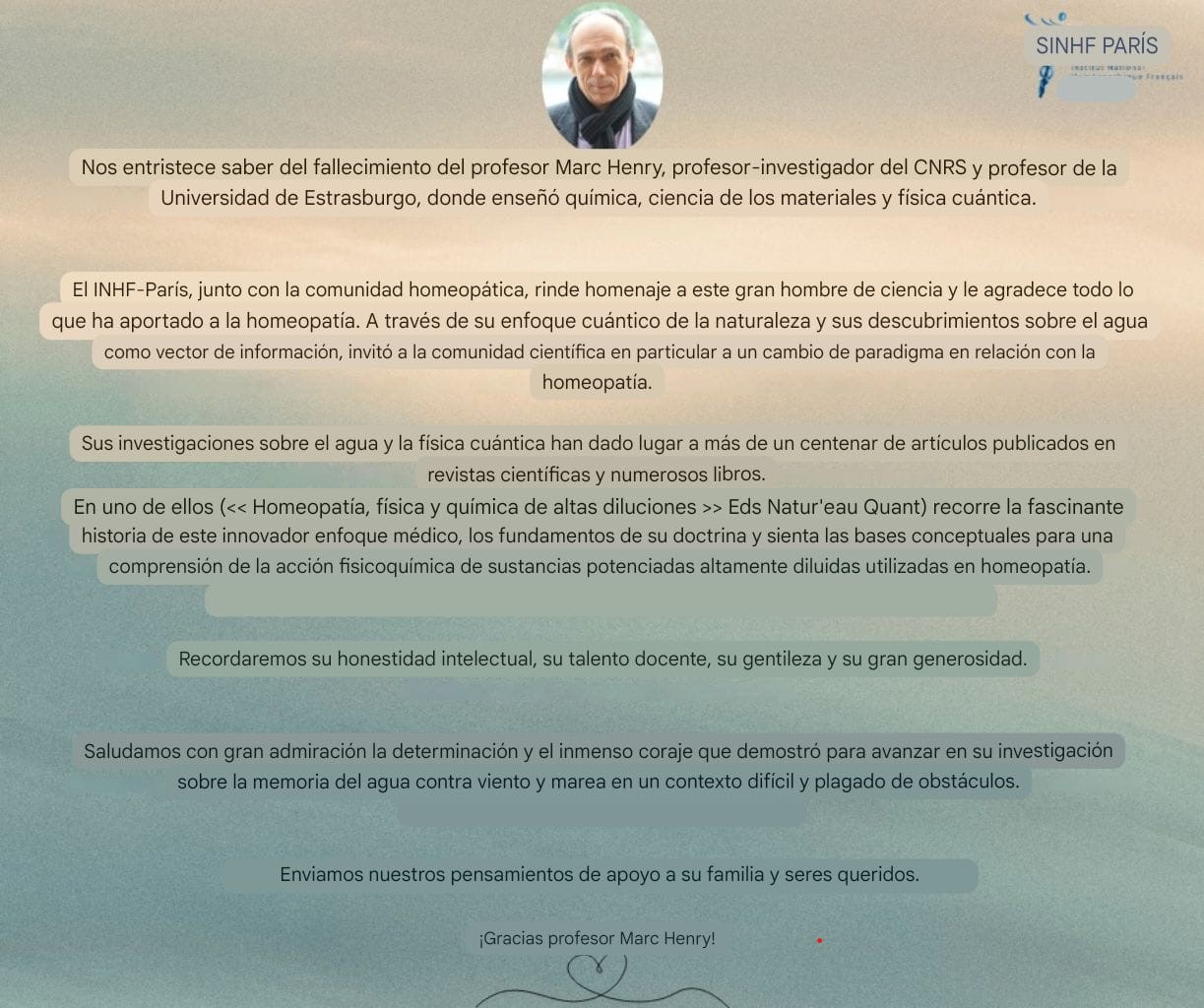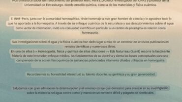El profesor Marc Henry, investigador del CNRS y profesor de la Universidad de Estrasburgo. Con sus estudios de física cuántica ha dado explicaciones científicas sobre la Homeopatía. Tuvimos la oportunidad de conocerle en en el Congreso de Homeopatía que se…